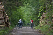 Titel: Cyklist i skogen