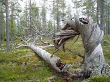 Beskrivning: Död ved, dödved, torrfura, naturträd, Ekopark Tranuberget
