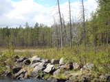 Beskrivning: Flottningsrester och ett landskap påverkat av bäver genom vattendämning. Myrmark, våtmark, torrfuror, dödved. Ekopark Tranuberget