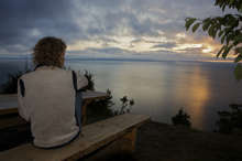 Beskrivning: Ekopark Malingsbo, kanotister i solnedgång