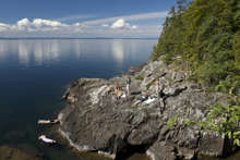 Beskrivning: Tältbygge vid vatten