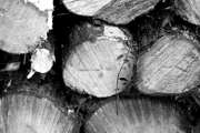 Beskrivning: Svartvitt timmer, svartvit, stockar, avverkat