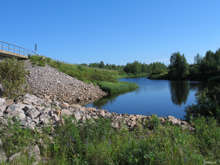 Beskrivning: Ekopark Piteälven, flottningslämningar, stockar, kvarlämningar av flottning